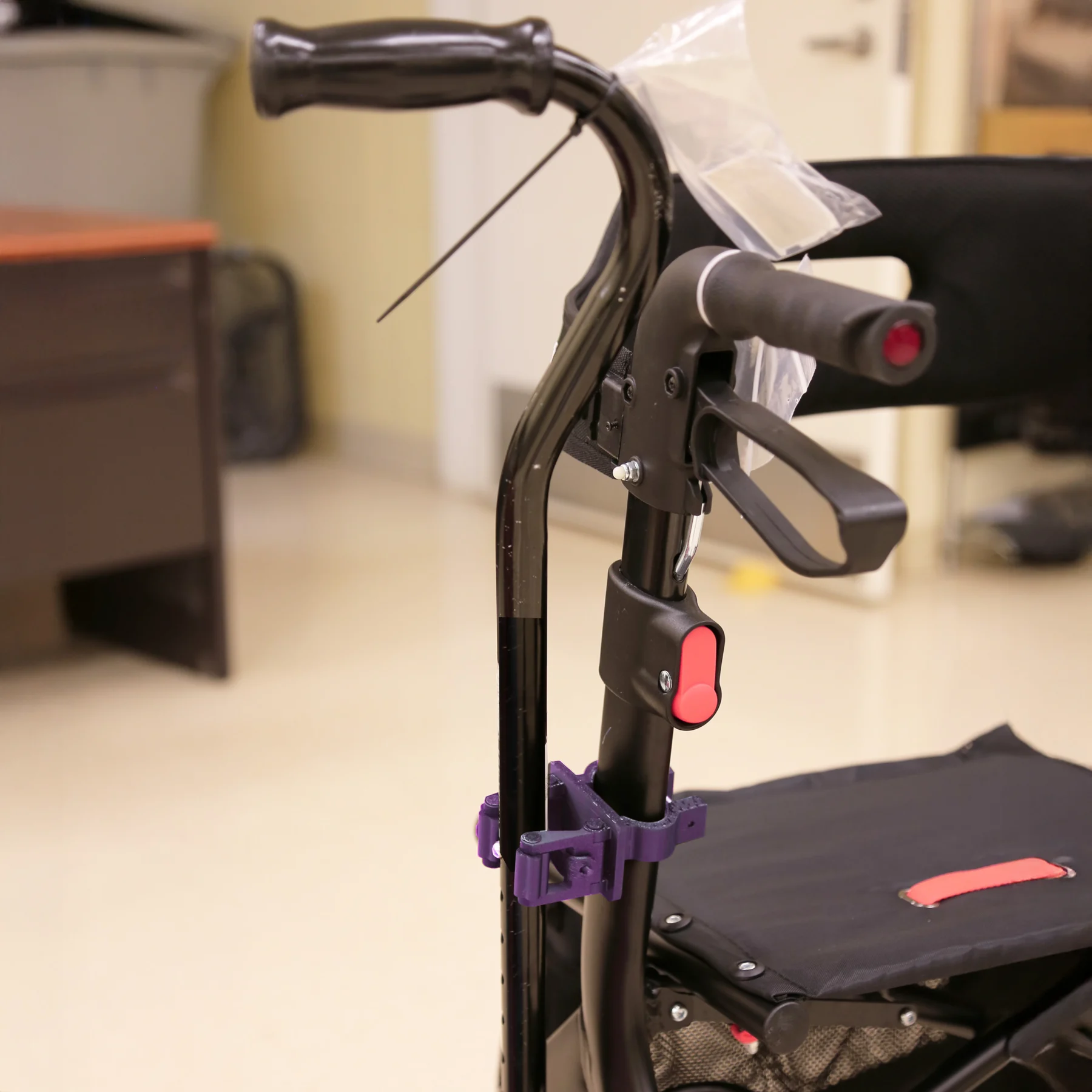 The print files provided have clips for a wheelchair and a rollator.