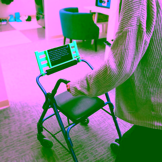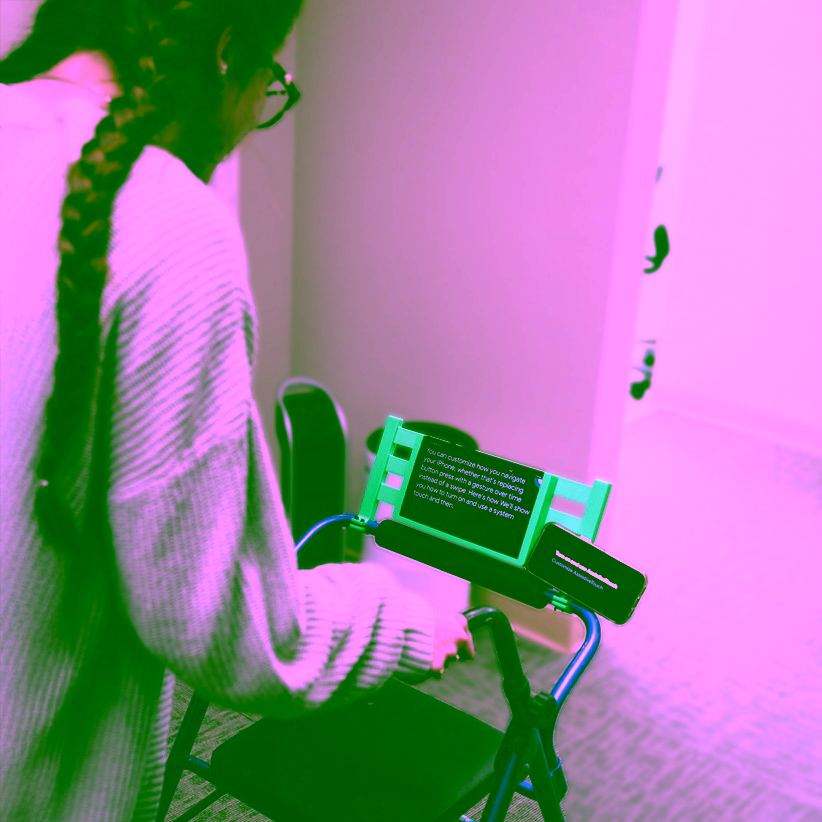 This device was intended to use with a small tablet, letting the user move around freely with a rollator while being hands free of their device.